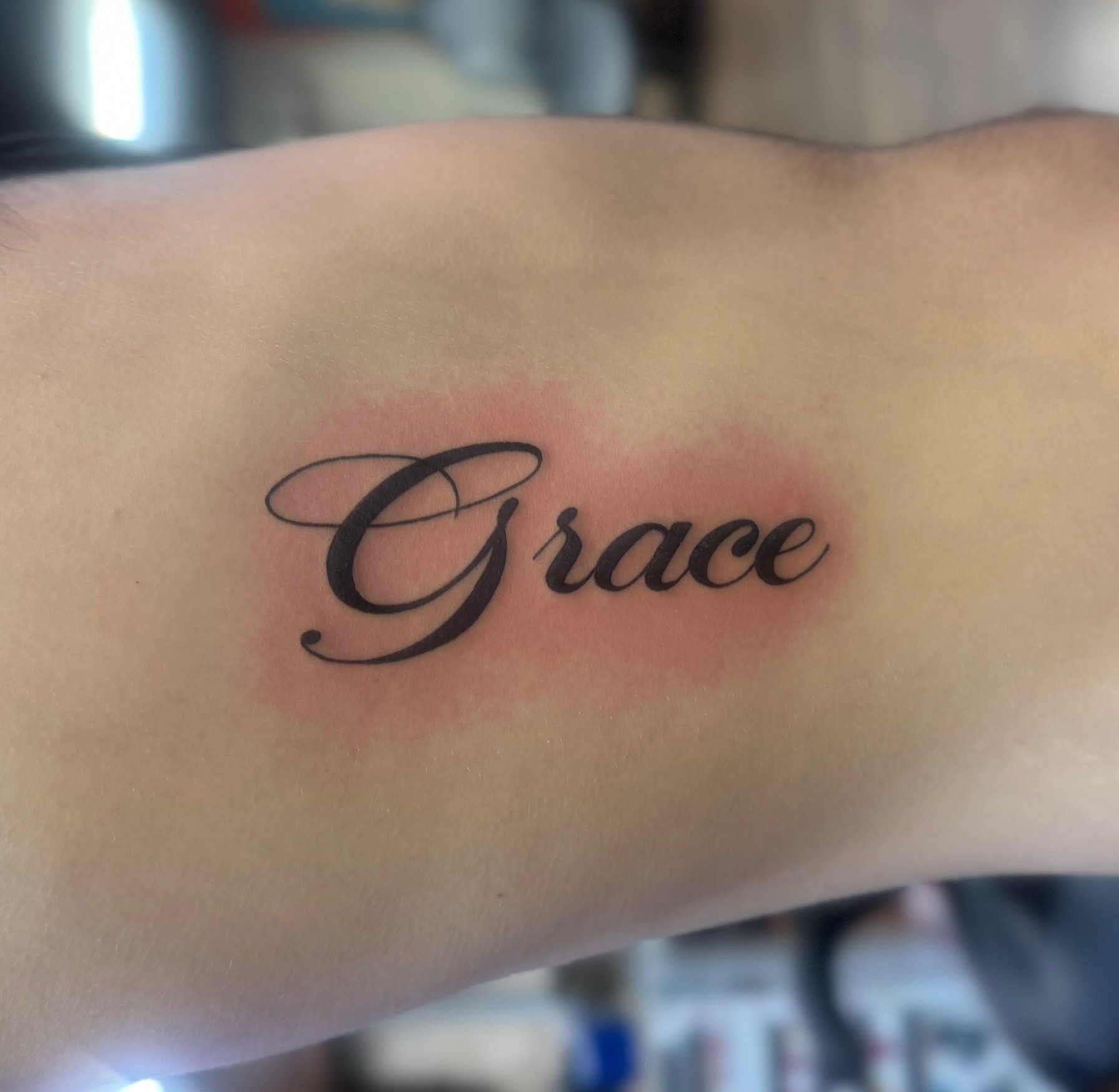 Raven really enjoys script, tribal, black & grey American-trad, Black and grey Neo-trad, and other black and grey tattoo styles.
